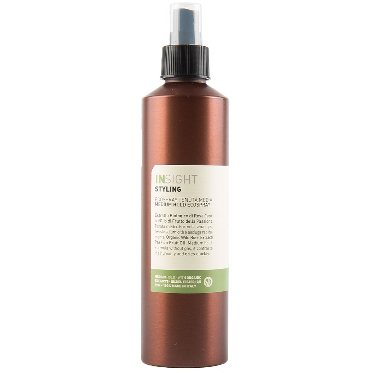 The InSight Professional Medium Hold Ecospray is made for all hair types. Does not contain gas.