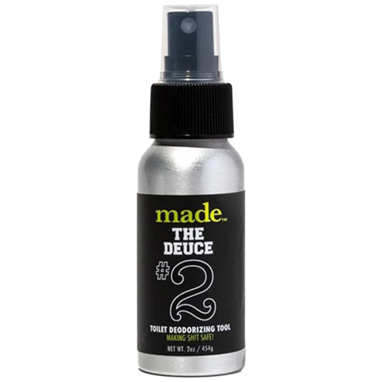 With made's The Deuce, toilet deodorizer spray, a little bathroom odor offense stops offensive odor before it starts! Spray twice - natural essential oils provide a protective barrier at the surface and prevent odors from rising from the bowl. The Deuce, men's toilet deodorizer, leverages a more potent smell-blocking formula than girly bathroom sprays...without the floral overload! The formula is scented with bright Grapefruit, Cedar, and Mint essential oils that keep your surroundings (and you) fresh! Contains 200+ flushes per bottle – this toilet deodorizer is guaranteed to rise to the occasion and last you a long, long time.